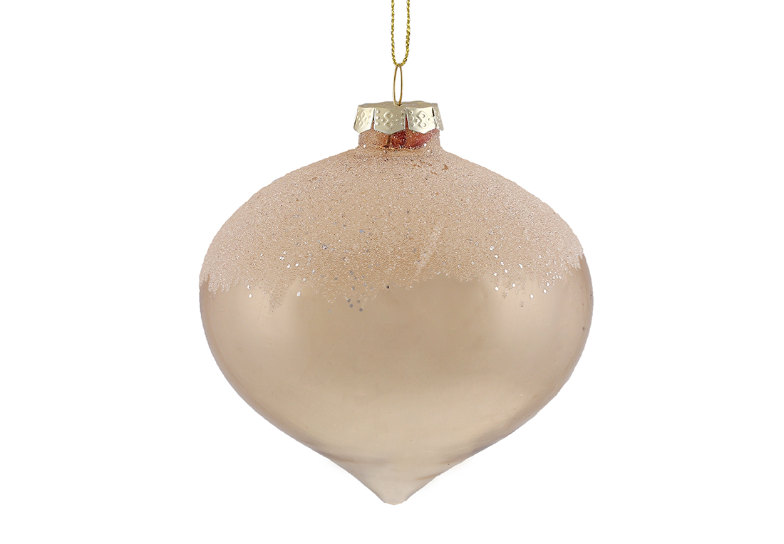 Ялинкова прикраса олива з прозорого скла з присипкою 10см, колір - карамель