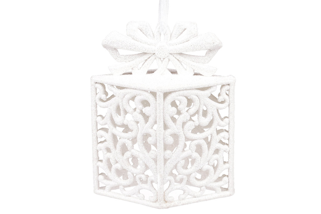 Ялинкова прикраса Подарунок, 14см, колір - білий