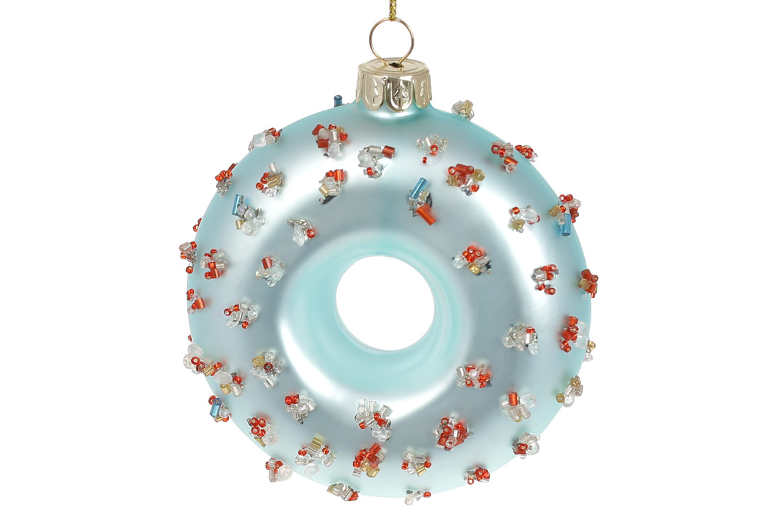 Ялинкова прикраса Пончик з декором з бісеру 10см, колір - світло-блакитний