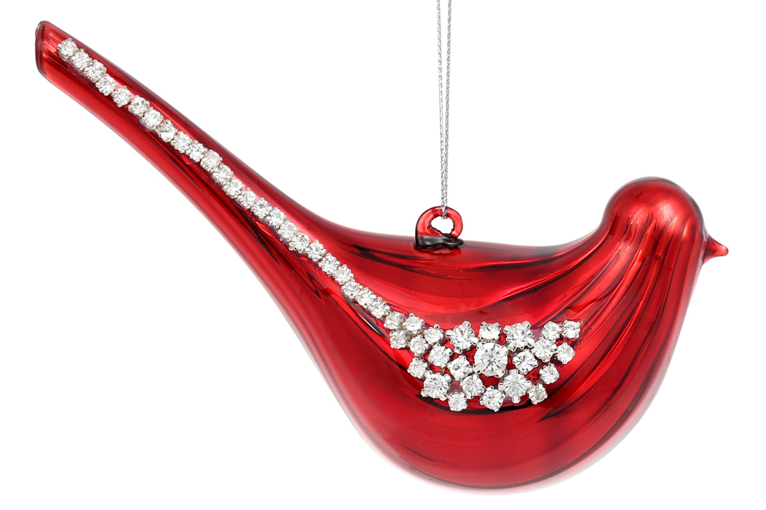 Ялинкова прикраса Птах з декором з каміння, 16см, колір - глибокий червоний
