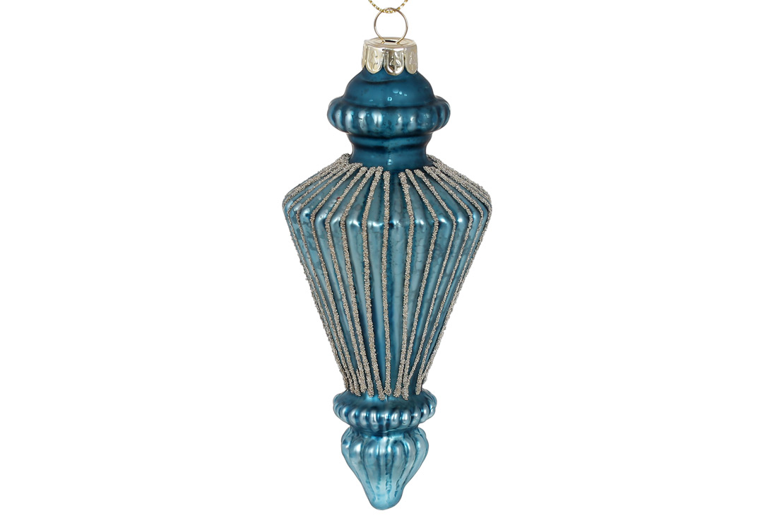 Ялинкова прикраса рельєфної форми 14см з гліттером, колір - блакитний антик