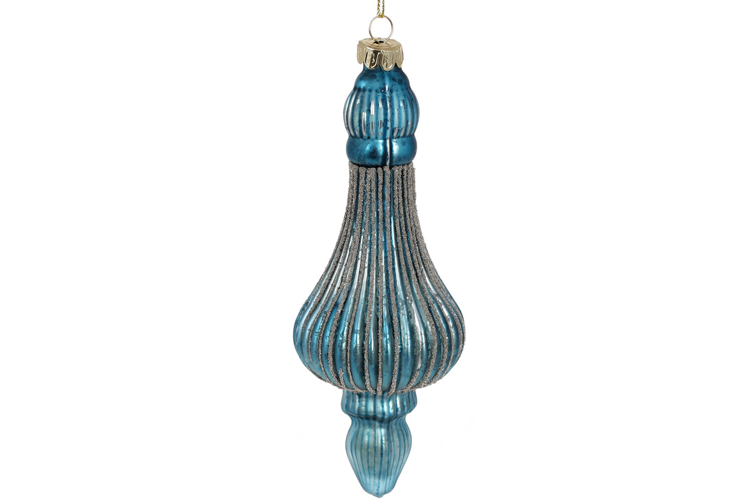 Ялинкова прикраса рельєфної форми 17см з гліттером, колір - блакитний антик.