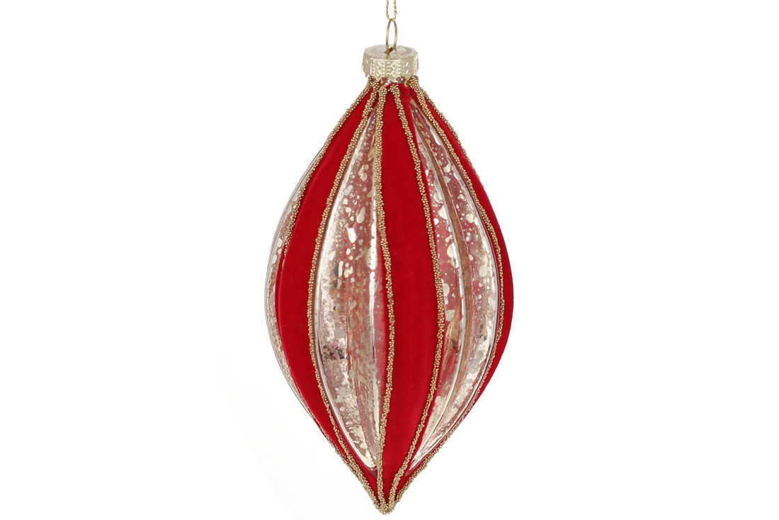 Ялинкова прикраса рельєфної форми "Червоний оксамит" 15см, колір - червоний з платиною