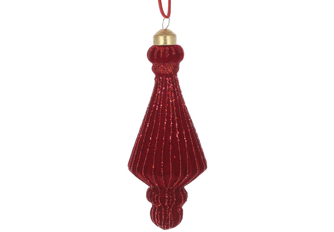 Ялинкова прикраса рельєфної форми з оксамитовим покриттям та гліттерним декором 6*15см, колір - бордовий
