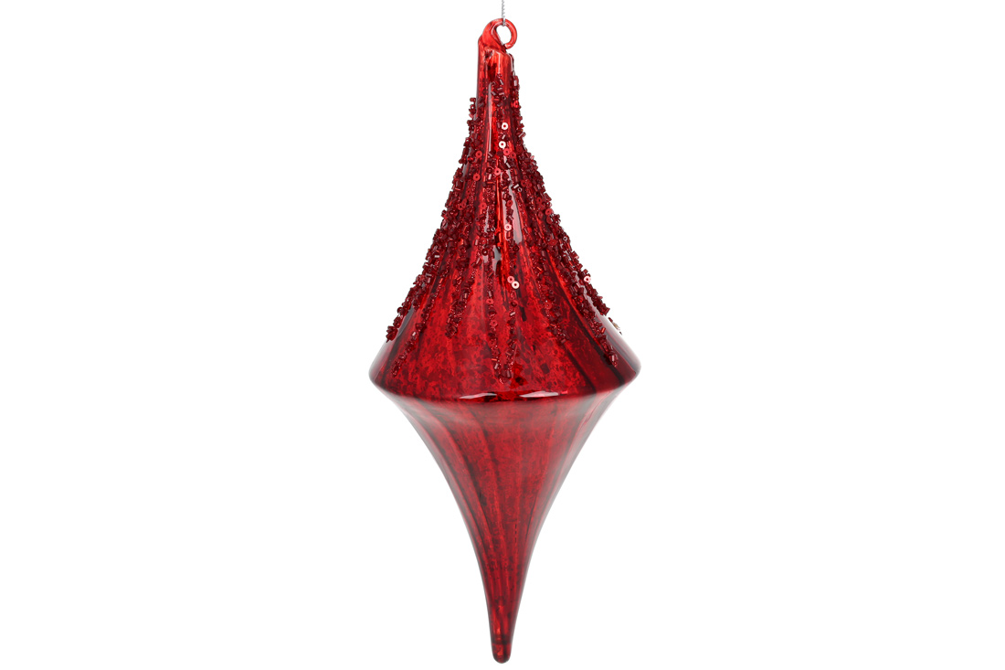 Ялинкова прикраса рельєфної форми з декором з бусин 30см, колір - бургунді