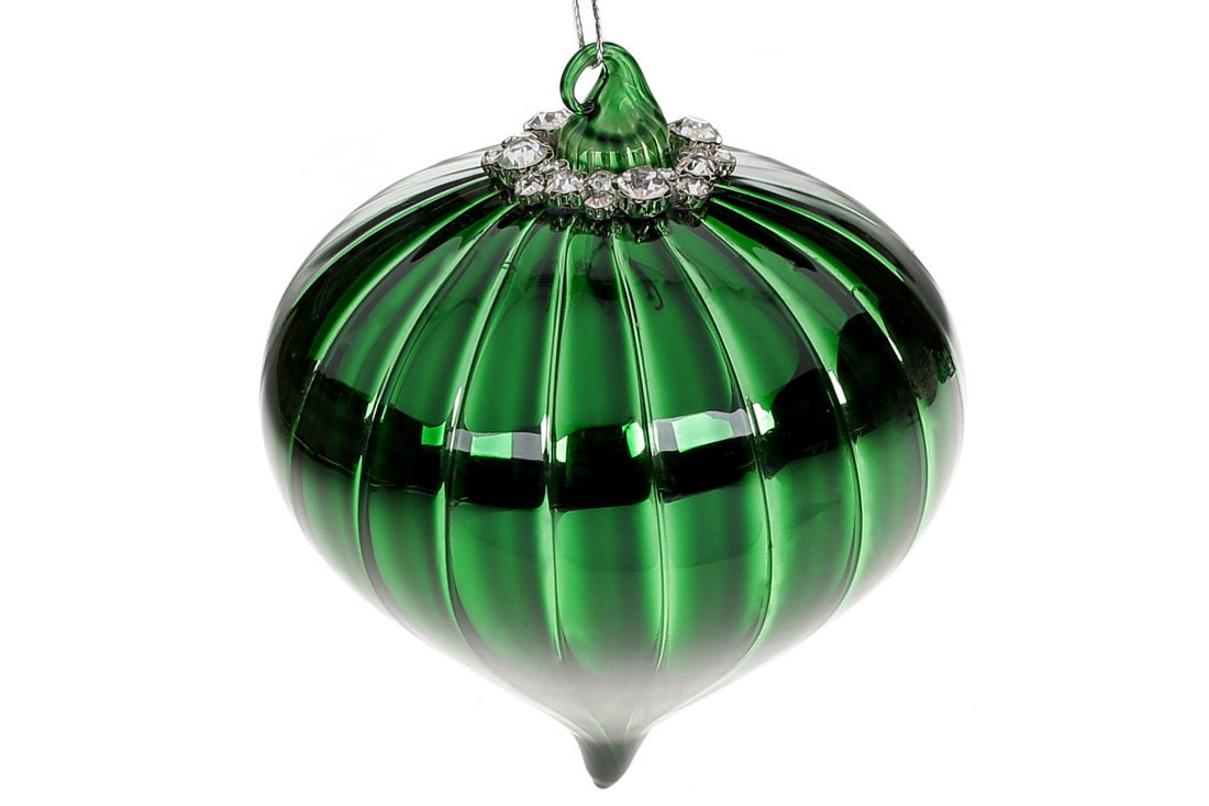 Ялинкова прикраса з декором з каміння, 10см, колір - смарагдовий зелений