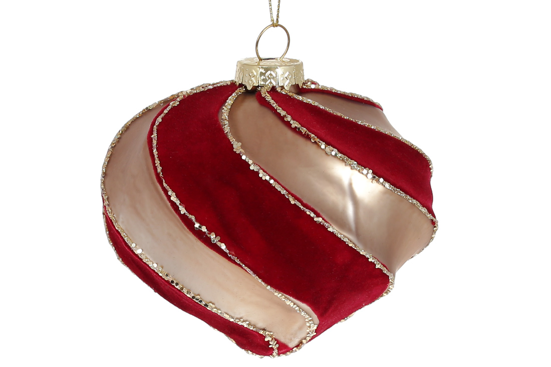 Ялинкова прикраса з матовим та оксамитовим покриттям 10см, колір - бордо з золотом