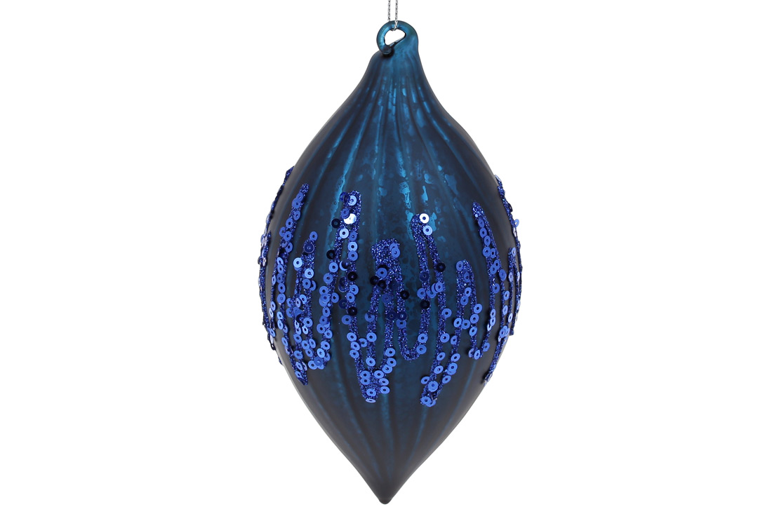 Ялинкова прикраса з матовим покриттям і візерунком з паєток, 15см, колір - індиго