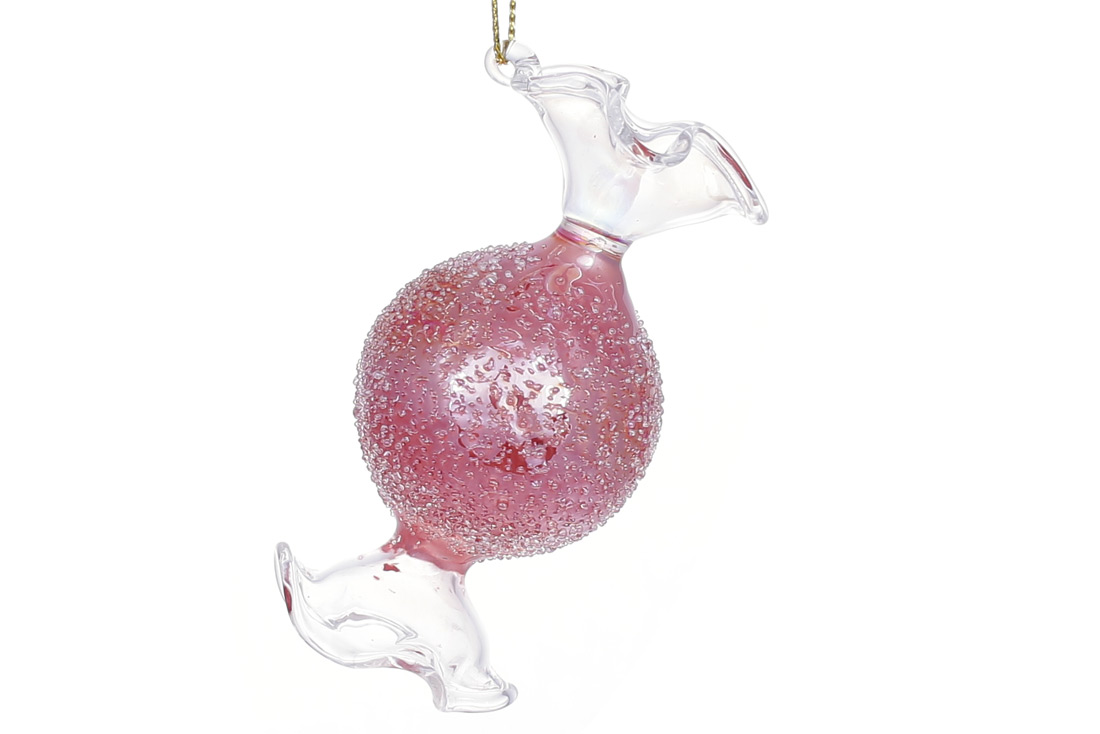 Ялинкова прикраса з покриттям "лід" Цукерка 8.2см, колір - полуничний діамант