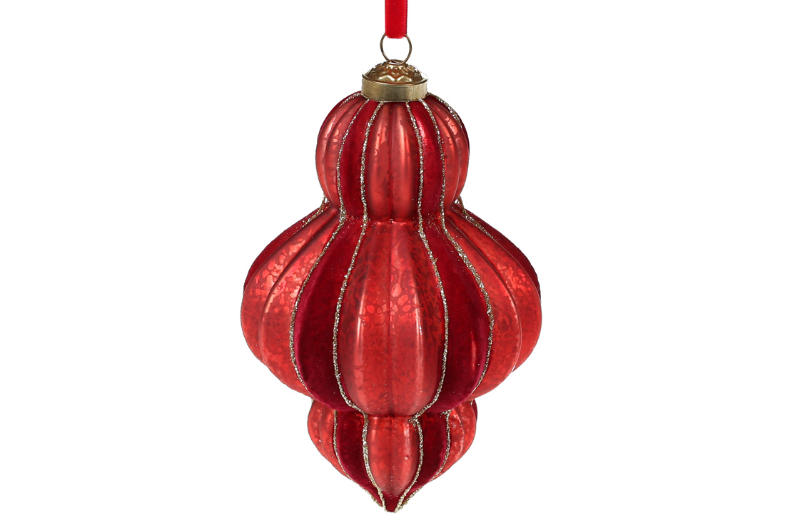 Ялинкова прикраса з покриттям матовий антик та оксамит, 15см, колір - червоний