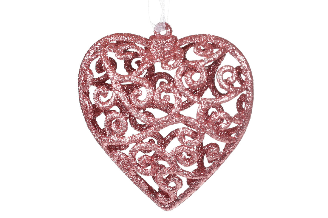 Ялинкова прикраса Серце 7.5*8см, колір - рожево-персиковий