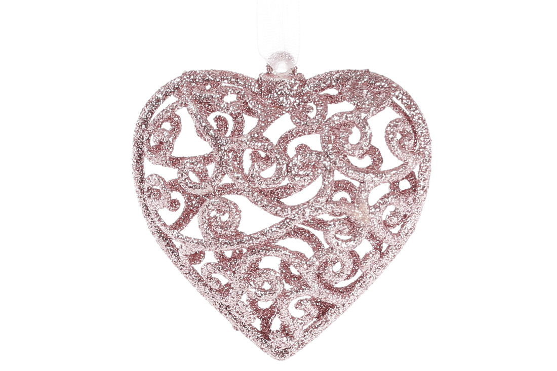 Ялинкова прикраса Серце 7.5*8см, колір - світло-рожевий