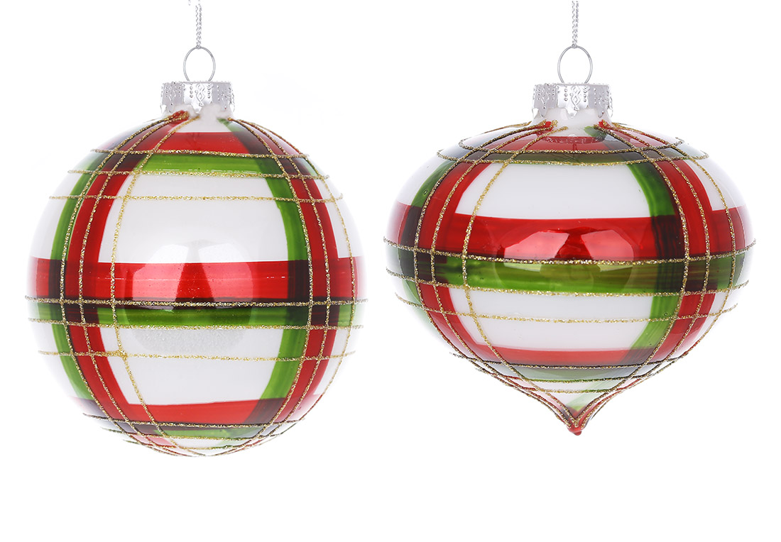 Ялинкова прикраса Куля і Цибуля 10см, 2 дизайну, колір - червоний із зеленим