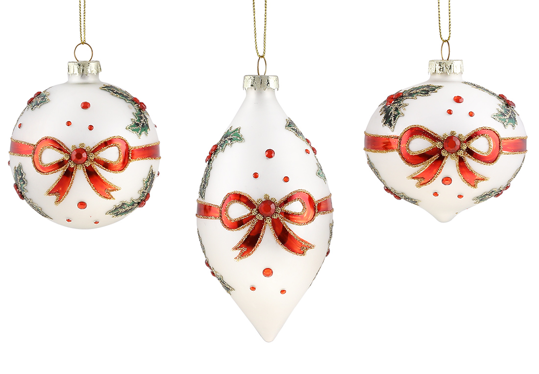 Ялинкова прикраса куля, олива, цибуля 8 см, 3 види, колір - білий з червоним