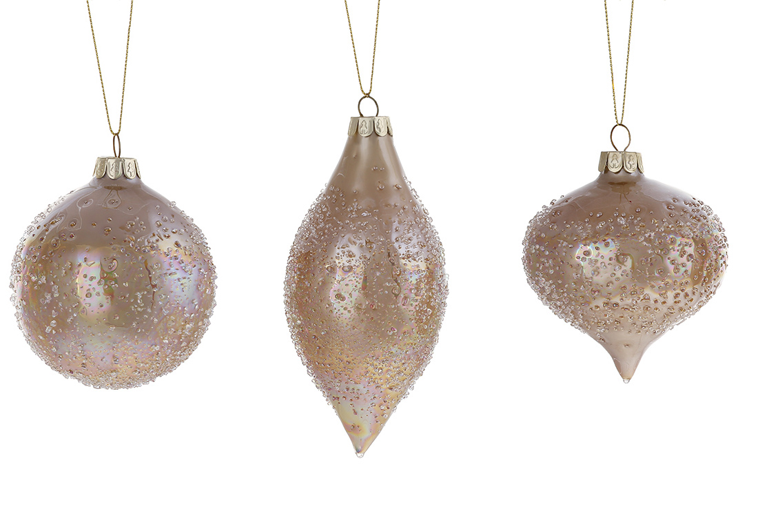Ялинкова прикраса куля, олива, цибуля в асортименті, 3 види, колір - темне золото
