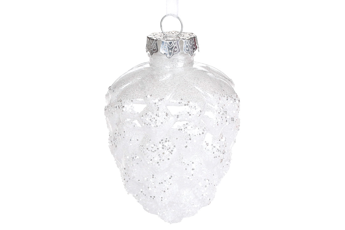 Ялинкова прикраса Шишка 10см, колір - сріблясто-білий