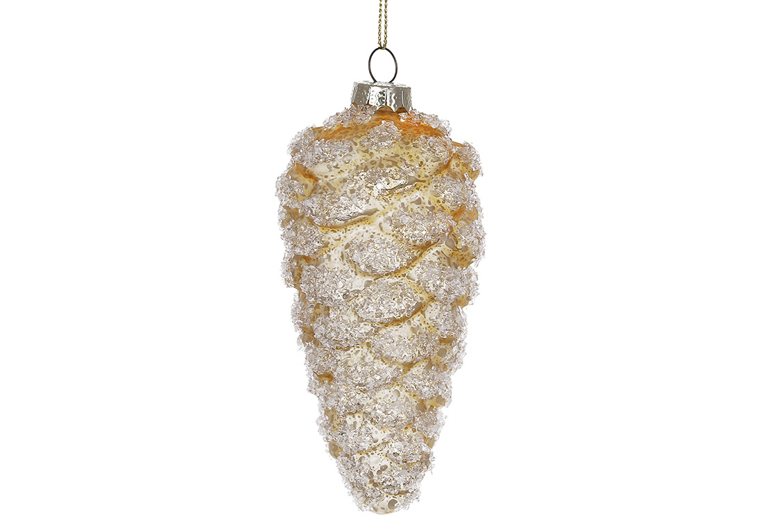 Ялинкова прикраса Шишка з декором з бісеру та глітеру, 13.5см, колір - шампань