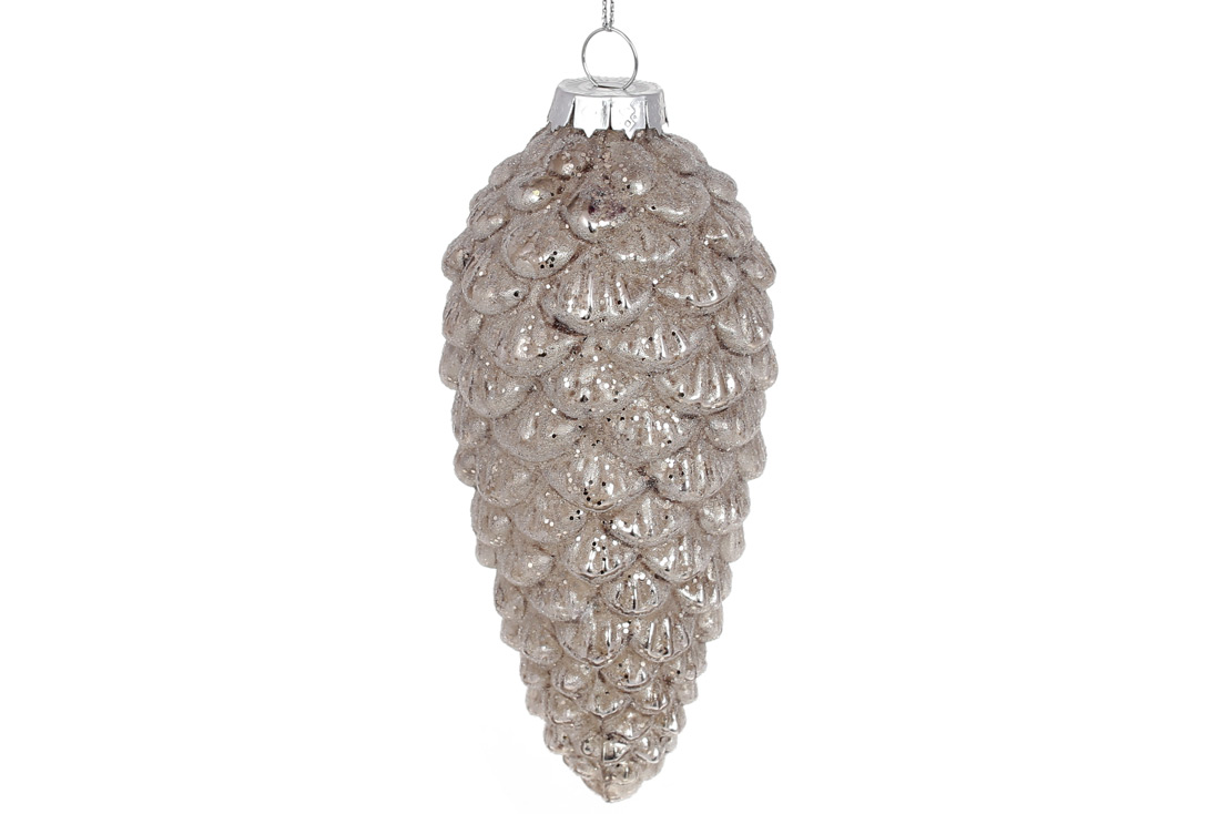 Ялинкова прикраса Шишка з декором із гліттера 13.5см, колір - теплий сірий