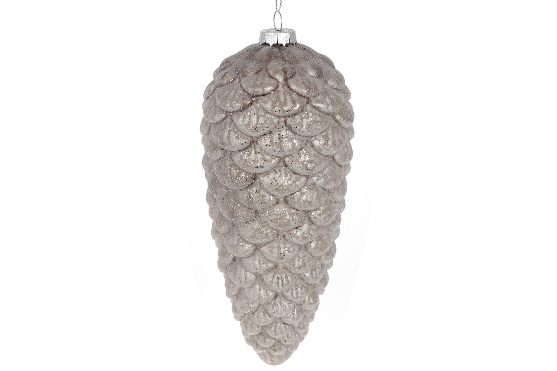 Ялинкова прикраса Шишка з декором із гліттера 20см, колір - теплий сірий