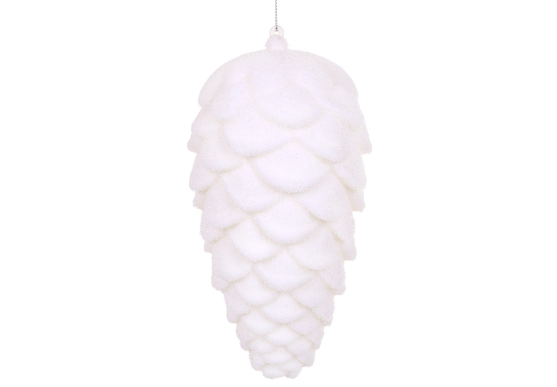 Ялинкова прикраса Шишка з флоковим напиленням 19см, колір - білий гліттер