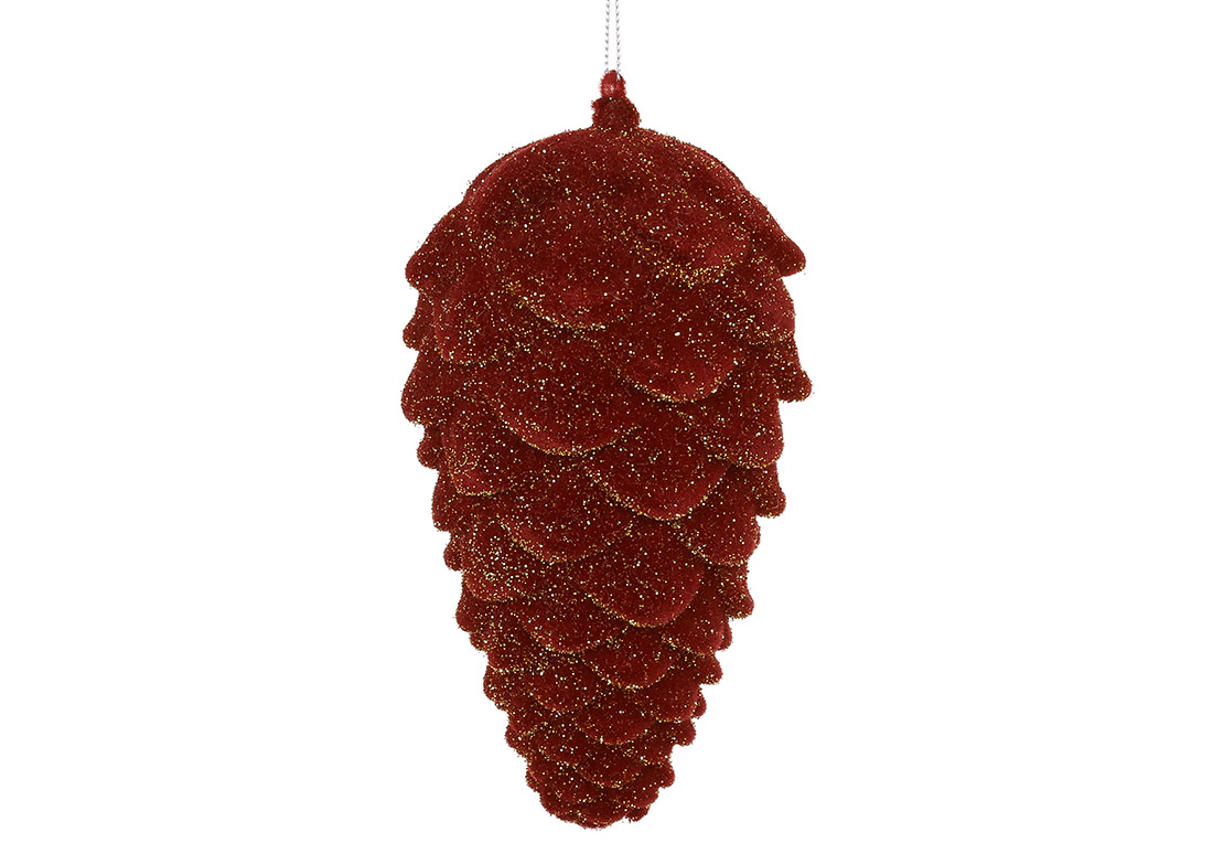 Ялинкова прикраса Шишка з флоковим напиленням 19см, колір - бордовий гліттер