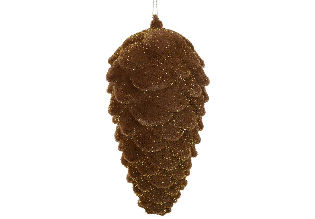 Ялинкова прикраса Шишка з флоковим напиленням 19см, колір - шоколадний мокко гліттер