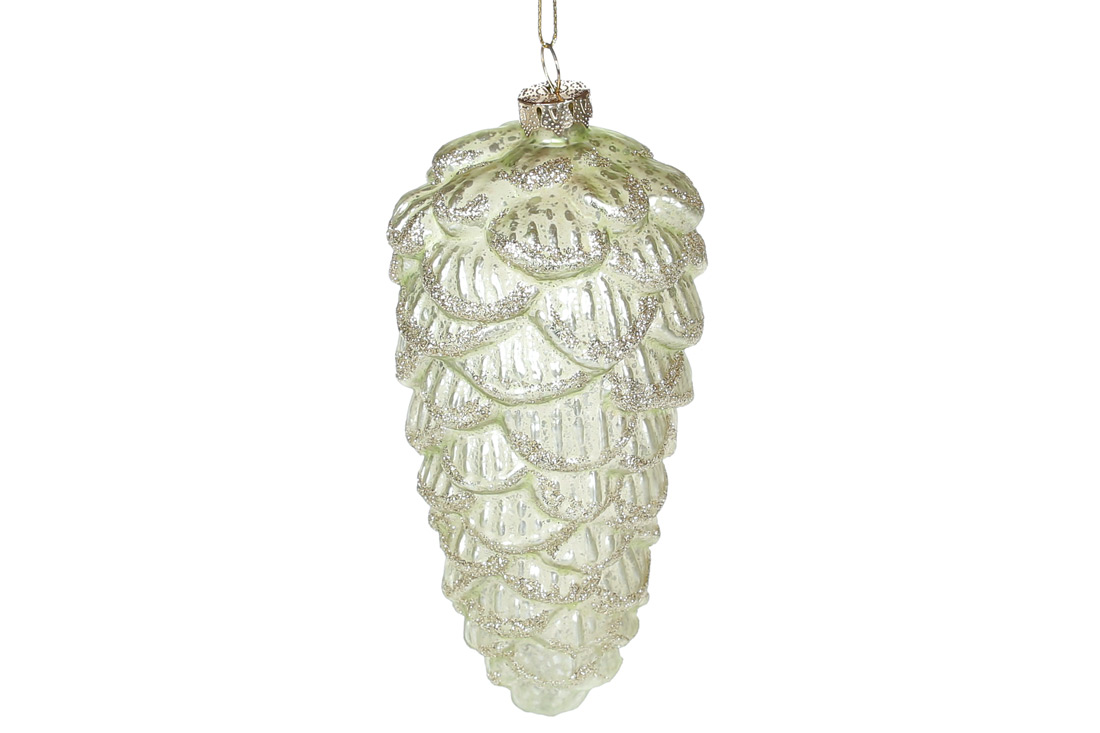 Ялинкова прикраса Шишка з гліттерною присипкою 13см, колір - ніжний зелений