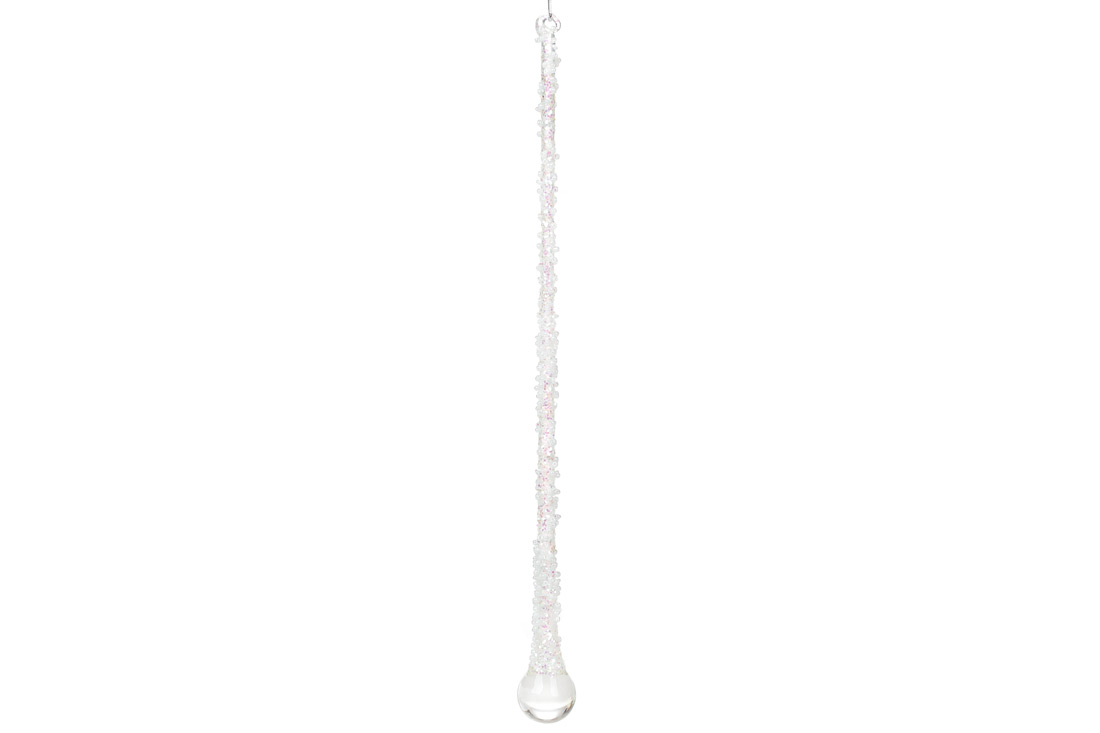 Ялинкова прикраса Бурулька, 30см, колір - білий з рожевим гліттером