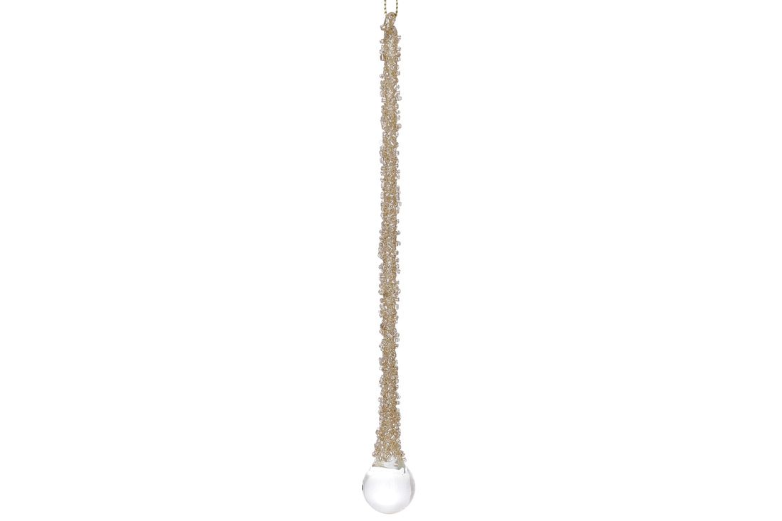 Ялинкова прикраса Бурулька з декором із бісеру та гліттера, 20см, колір - золото