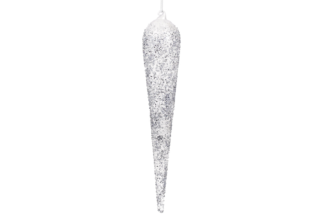 Ялинкова прикраса Бурулька з покриттям лід і гліттером, 30см, колір - графіт