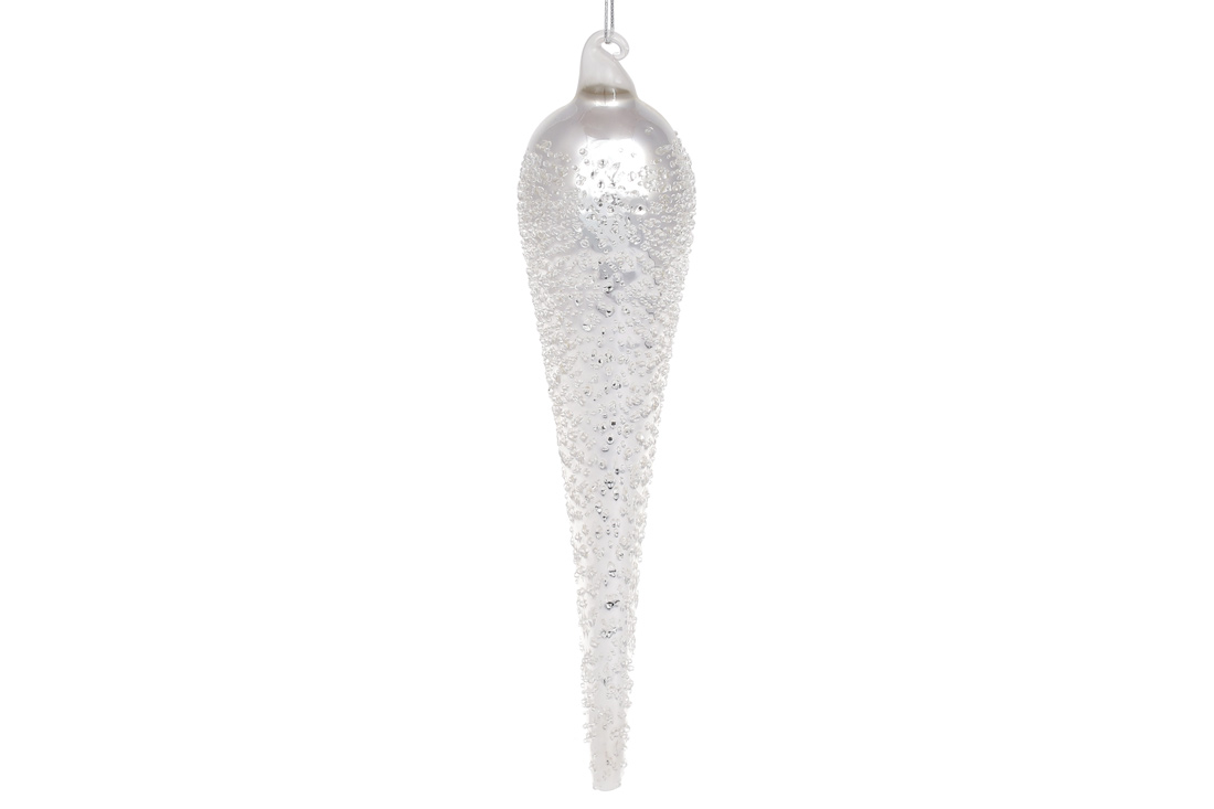 Ялинкова прикраса Бурулька з покриттям лід та дзеркальним ефектом, 20см, колір - срібло