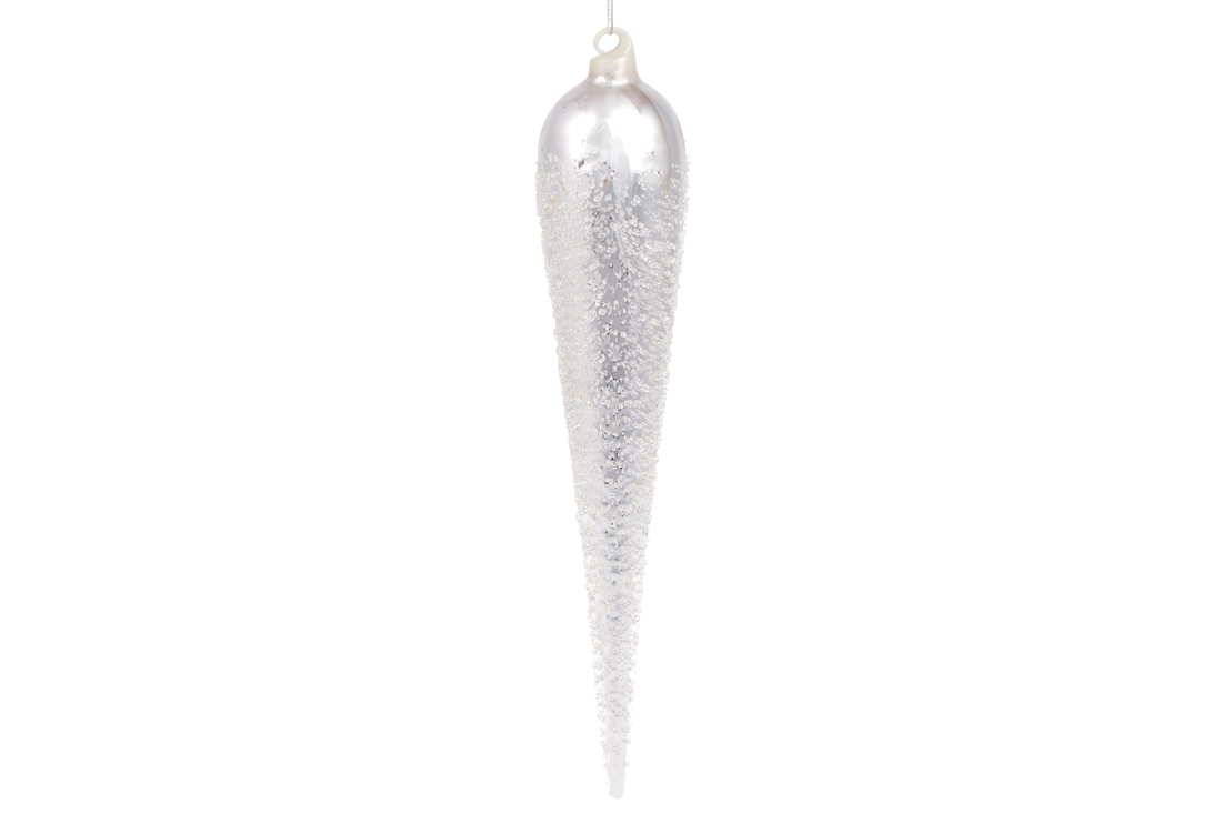Ялинкова прикраса Бурулька з покриттям лід та дзеркальним ефектом, 30см, колір - срібло