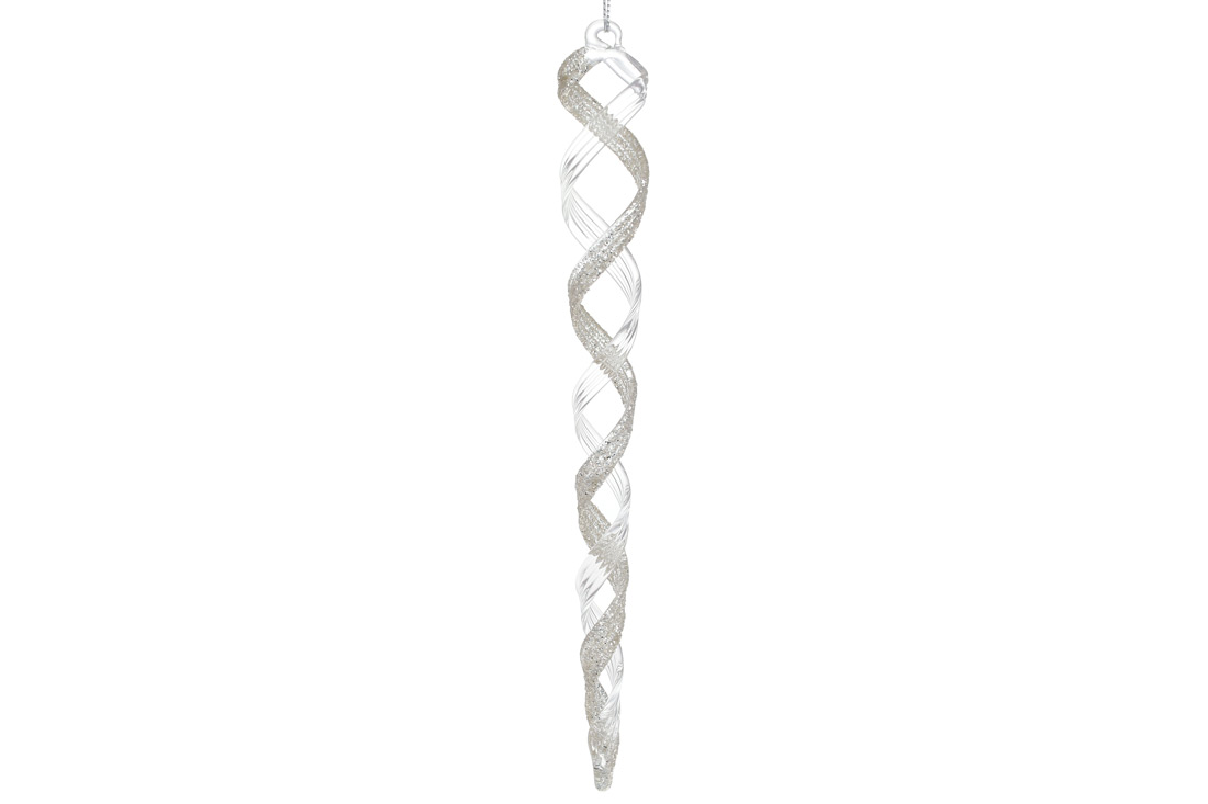 Ялинкова прикраса спіральна Бурулька 24см, колір - прозорий із сріблом