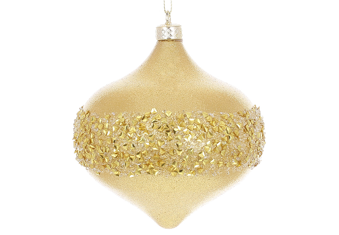 Ялинкова прикраса у формі цибулини з декором із гліттера 10см, колір - золото