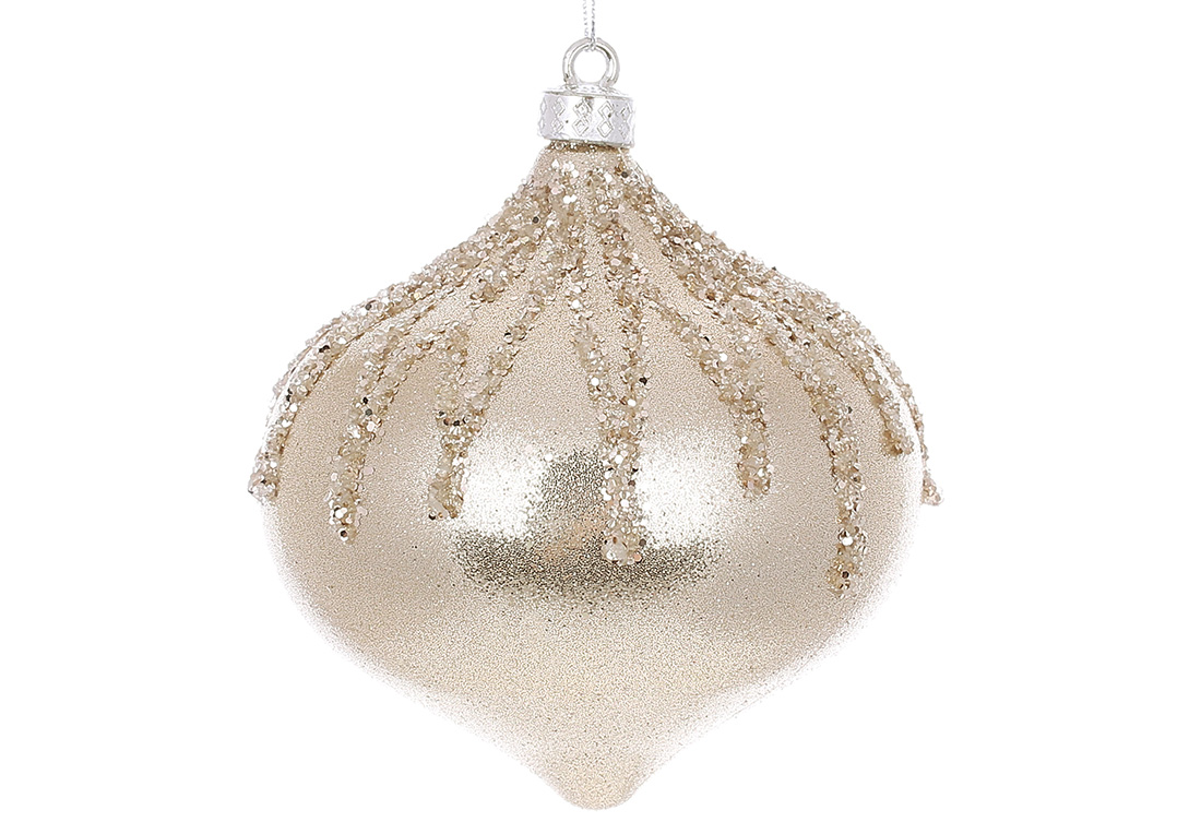 Ялинкова прикраса у формі цибулини з декором із гліттера 8см, колір - шампань