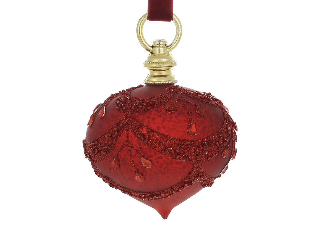 Ялинкова прикраса у формі цибулини зі стразами 10см, колір - антик бордо