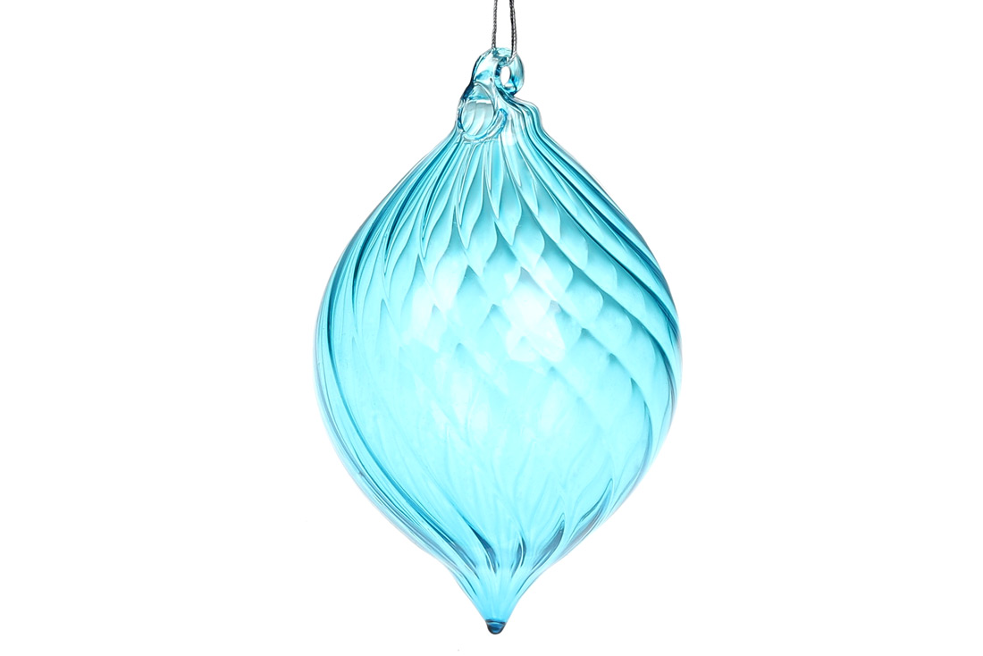 Ялинкова прикраса крученої форми, прозорне скло, 13см, колір - блакитна лазур