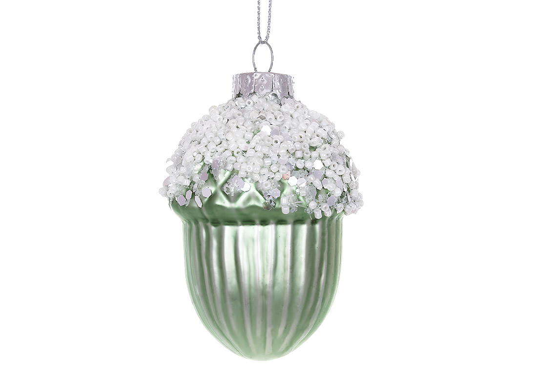 Ялинкова прикраса Жолудь з декором з бісеру, 11см, колір - м'ятний