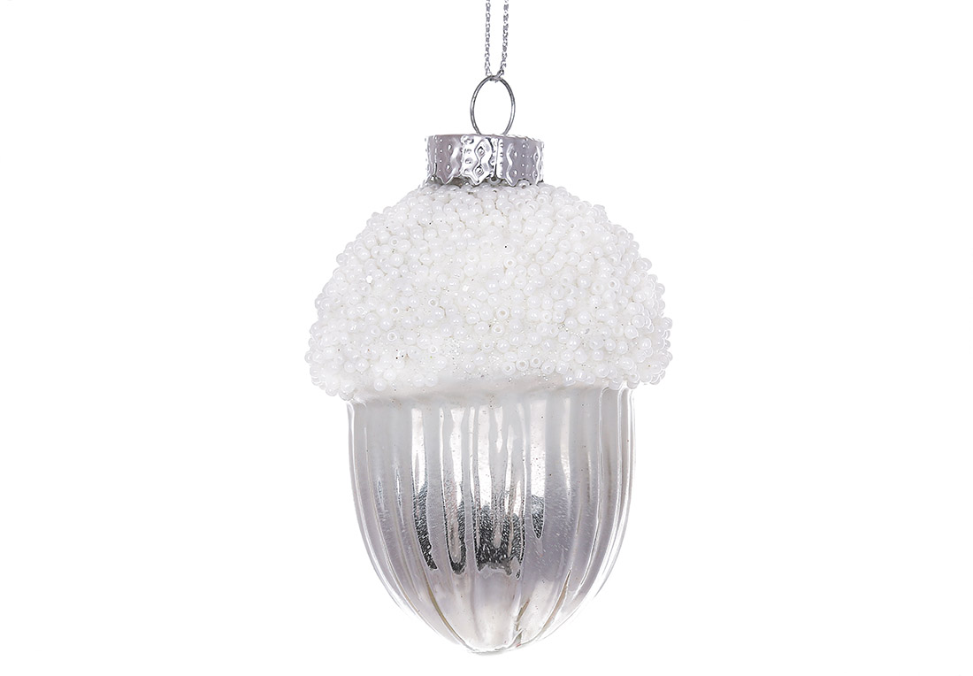 Ялинкова прикраса Жолудь з декором з бісеру, 11см, колір - срібло