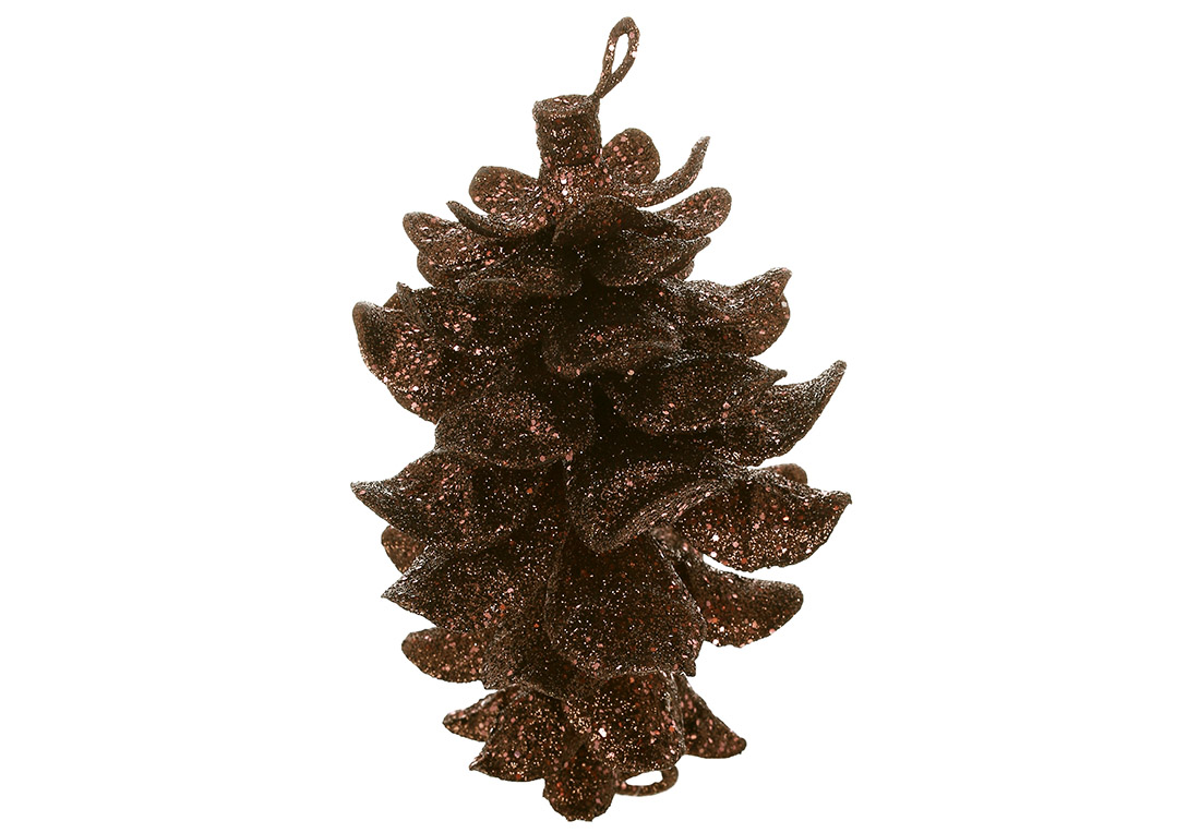 Ялинкова прикраса Шишка 16см, колір - коричневий гліттер