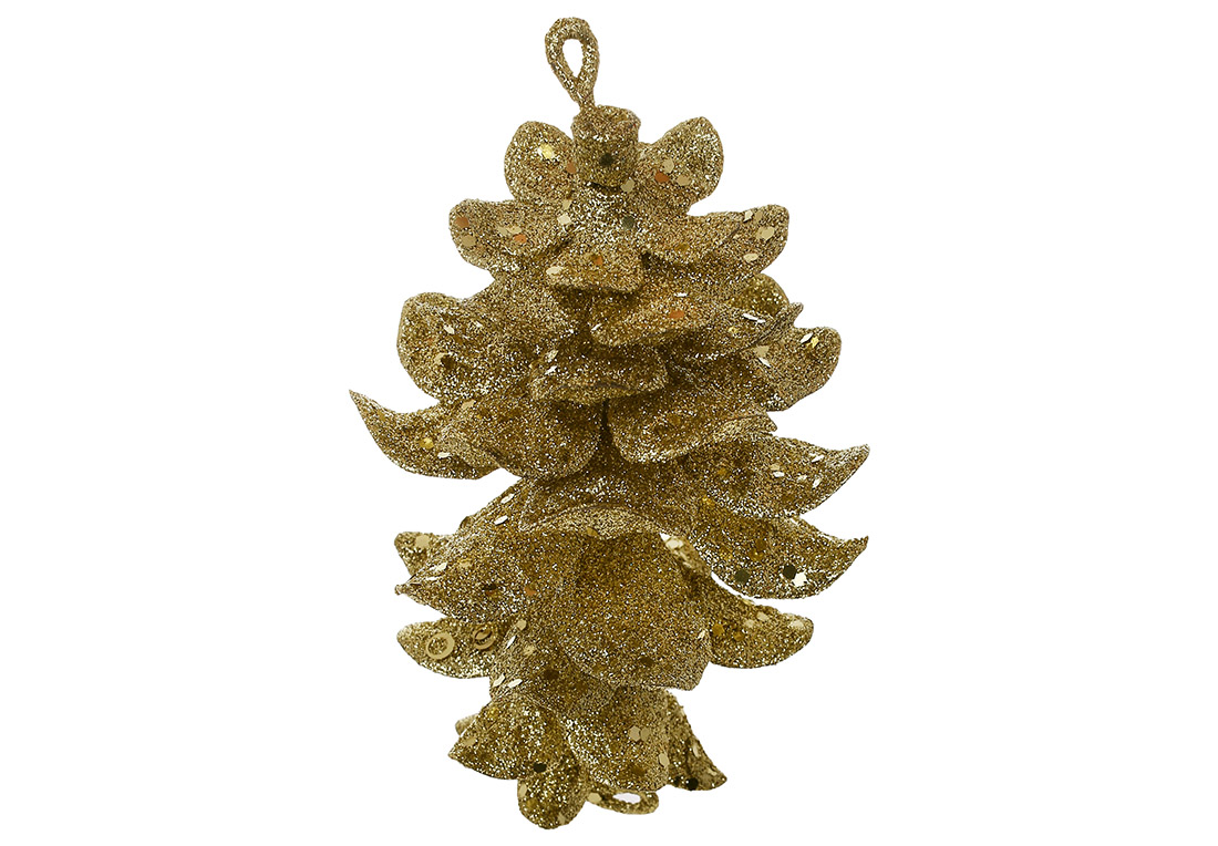 Ялинкова прикраса Шишка 16см, колір - золотий гліттер