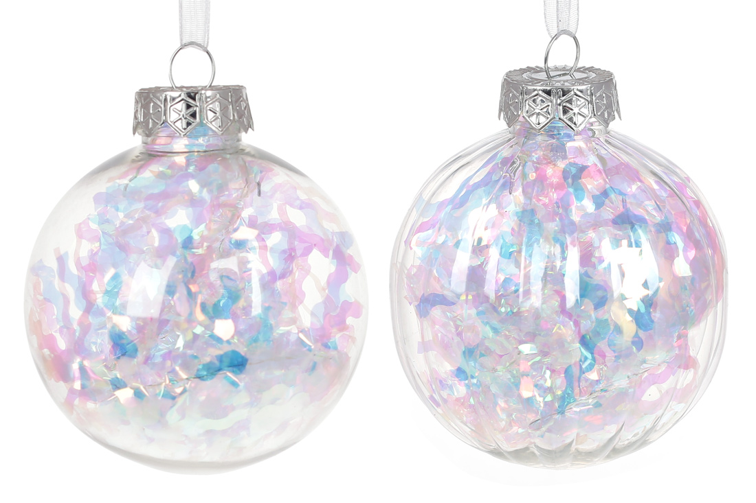 Ялинкова пластикова куля з мішурою 8см, 2 дизайни