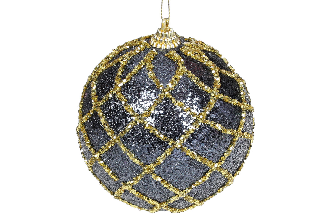 Ялинкова куля 10см із золотим орнаментом, колір - синій із золотом.