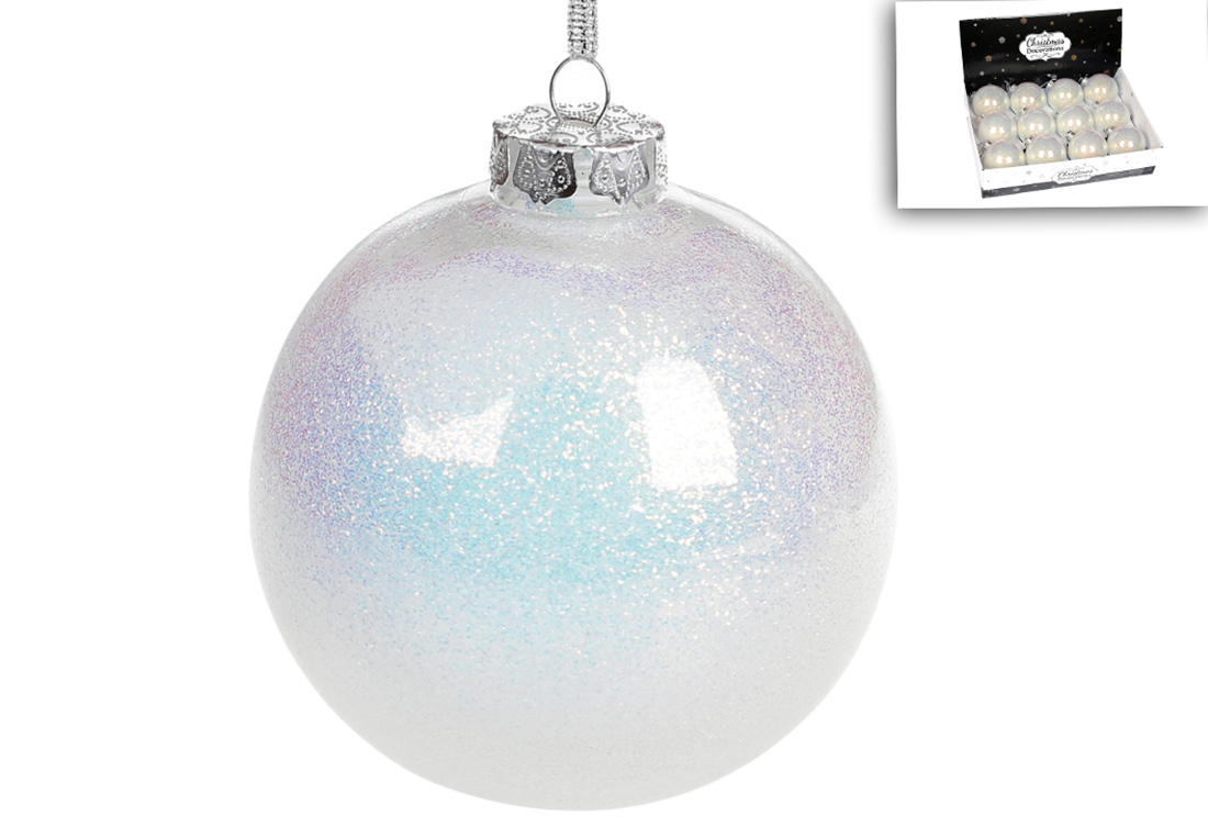 Ялинкова куля 10см, колір - діамантовий блиск з глітером усередині