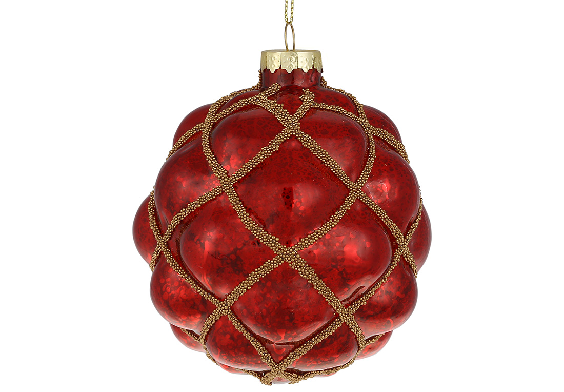 Ялинкова куля 10см, колір - червоний антик із золотим гліттером