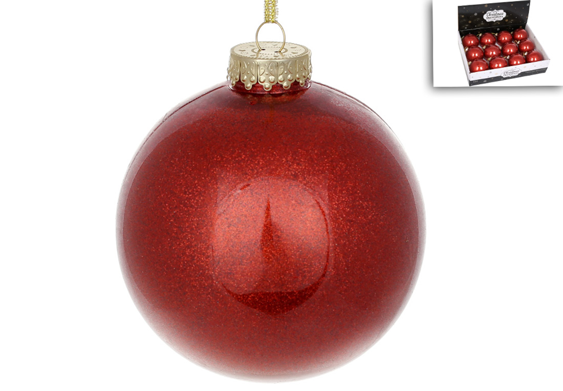 Ялинкова куля 10см, колір - червоний з гліттером всередині