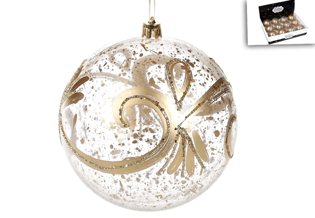 Ялинкова куля 10см, колір - прозорий антик із золотим візерунком