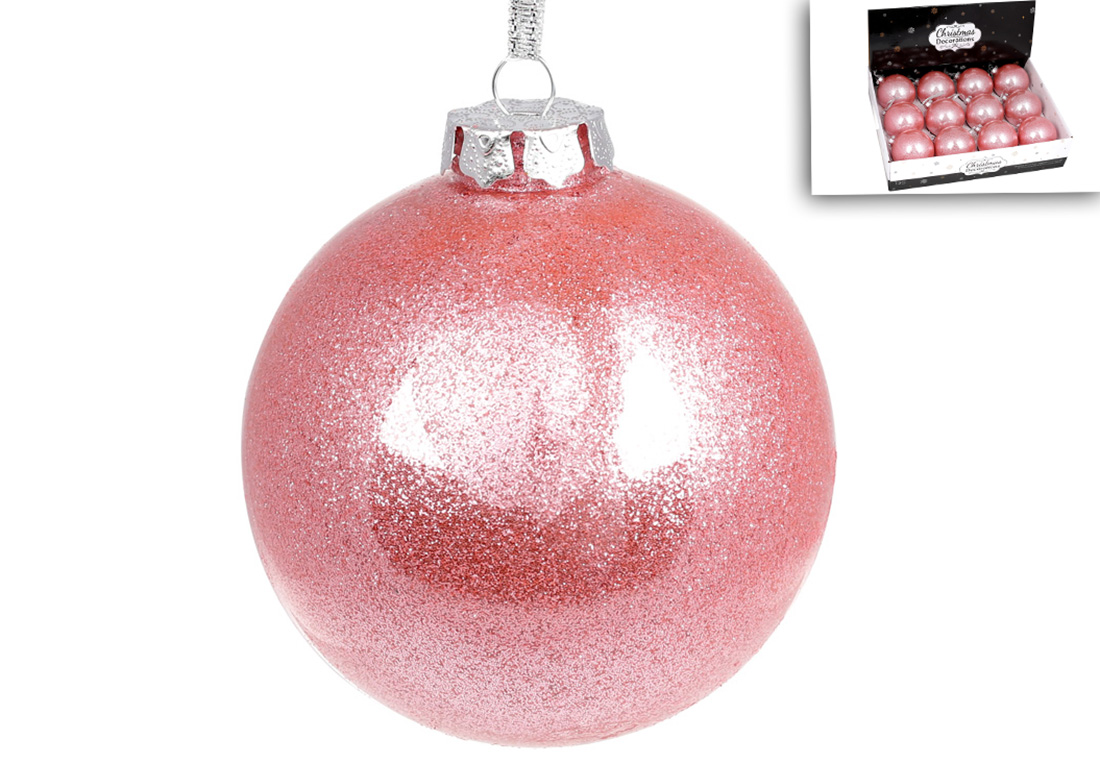 Ялинкова куля 10см, колір - рожевий з гліттером усередині