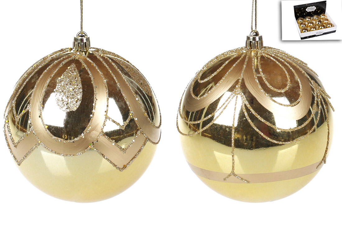 Ялинкова куля 10см, колір - золото глянець з візерунком, 2 дизайни