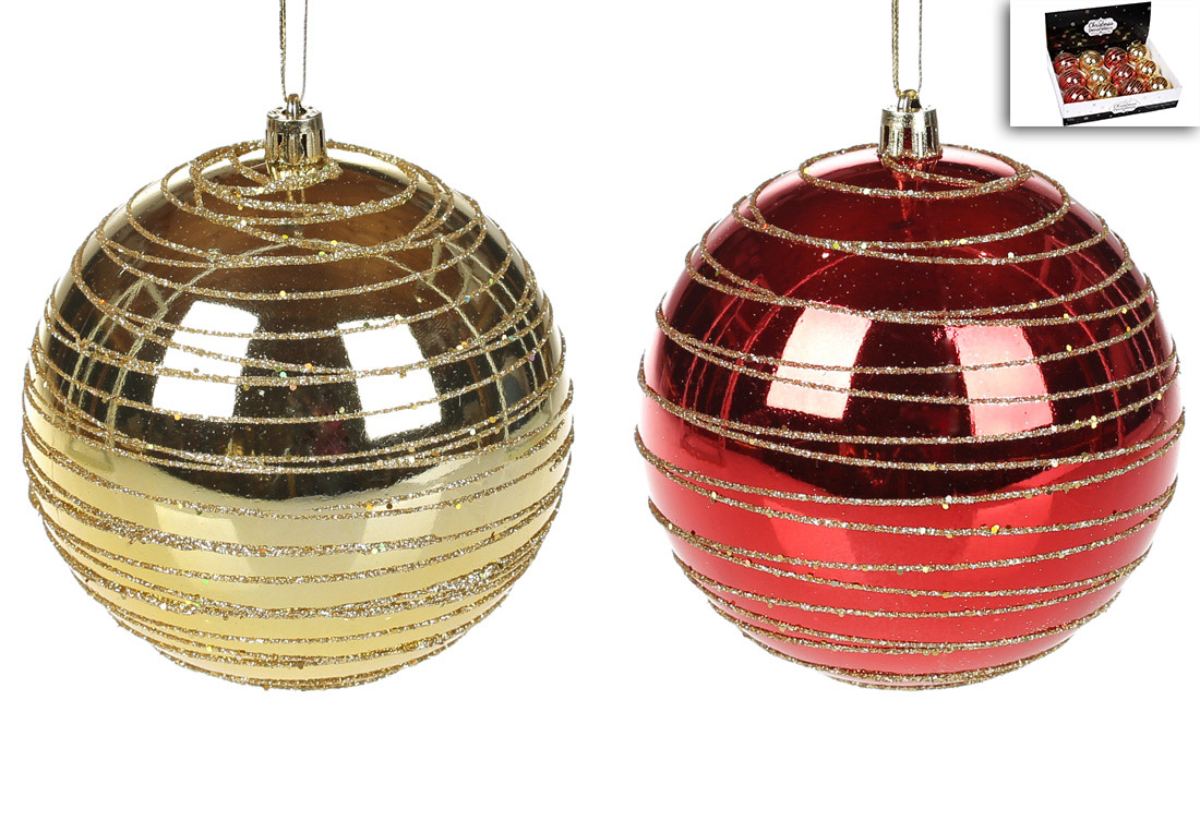 Ялинкова куля 10см, мікс 2 кольори в дисплей коробці: золото, червоний